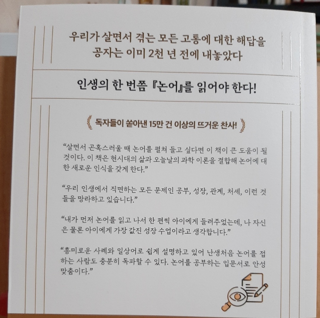 저자는 논어에 심취해서 연구하며 다음과 같이 말합니다.