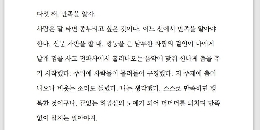 나는 모멸감으로 얼굴이 벌겋게 달아올랐는데 스스로를 변호할 줄 몰라서 말없이 고개를 떨구고 말았다. 여자는 쯧쯧쯧 혀를 크게 차더니 가버렸다.