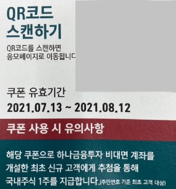 3. 도시락에 동봉된 쿠폰 QR코드를 통해 신한금융투자에 신규로 국내 및 해외주식 거래를 할 수 있는 비대면 CMA계좌를 개설합니다.