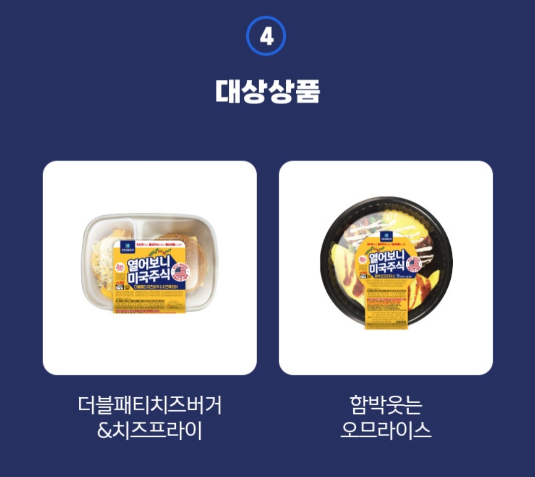 이벤트 도시락은 '더블패티치즈버거&치즈후라이'와 '함박웃는 오므라이스' 2종입니다.