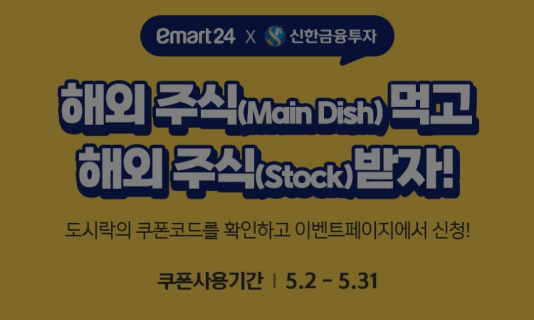 작년에 트렌드 분석 도서에서 주식 도시락에 대한 글을 읽었습니다. 편의점에서 도시락 구매 후 도시락에 붙은 쿠폰 QR코드로 응모하면 국내 기업 주식을 주는 이벤트였습니다. 당시 주식 도시락 이벤트는 4만 개가 완판 됐고, 준비한 주식 3만주 중 2만 5천 주가 등록되었습니다. 올해는 미국 주식 1주를 제공한다고 합니다. 이마트24 주식도시락 이벤트인 해외주식 먹고 해외주식 받자! 에 대해 알아봅니다.