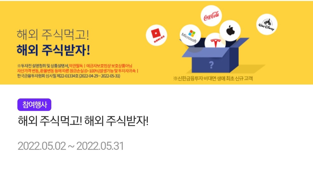 - 신한금융투자의 사정에 따라 주식 및 여행상품권은 해당 상품에 상응하는 경품으로 대체하여 지급 될 수 있습니다.
