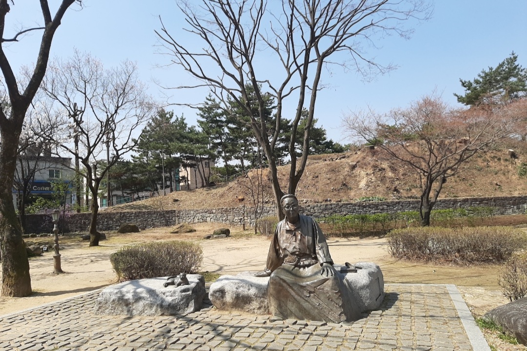 공원에 가면 호미 곁에 내려놓고 고양이와 쉬고 있는 선생님 동상을 물끄러미 바라보거나 곁에 살짝 앉아보거나 주위를 천천히 몇바퀴 돌기도 한다.