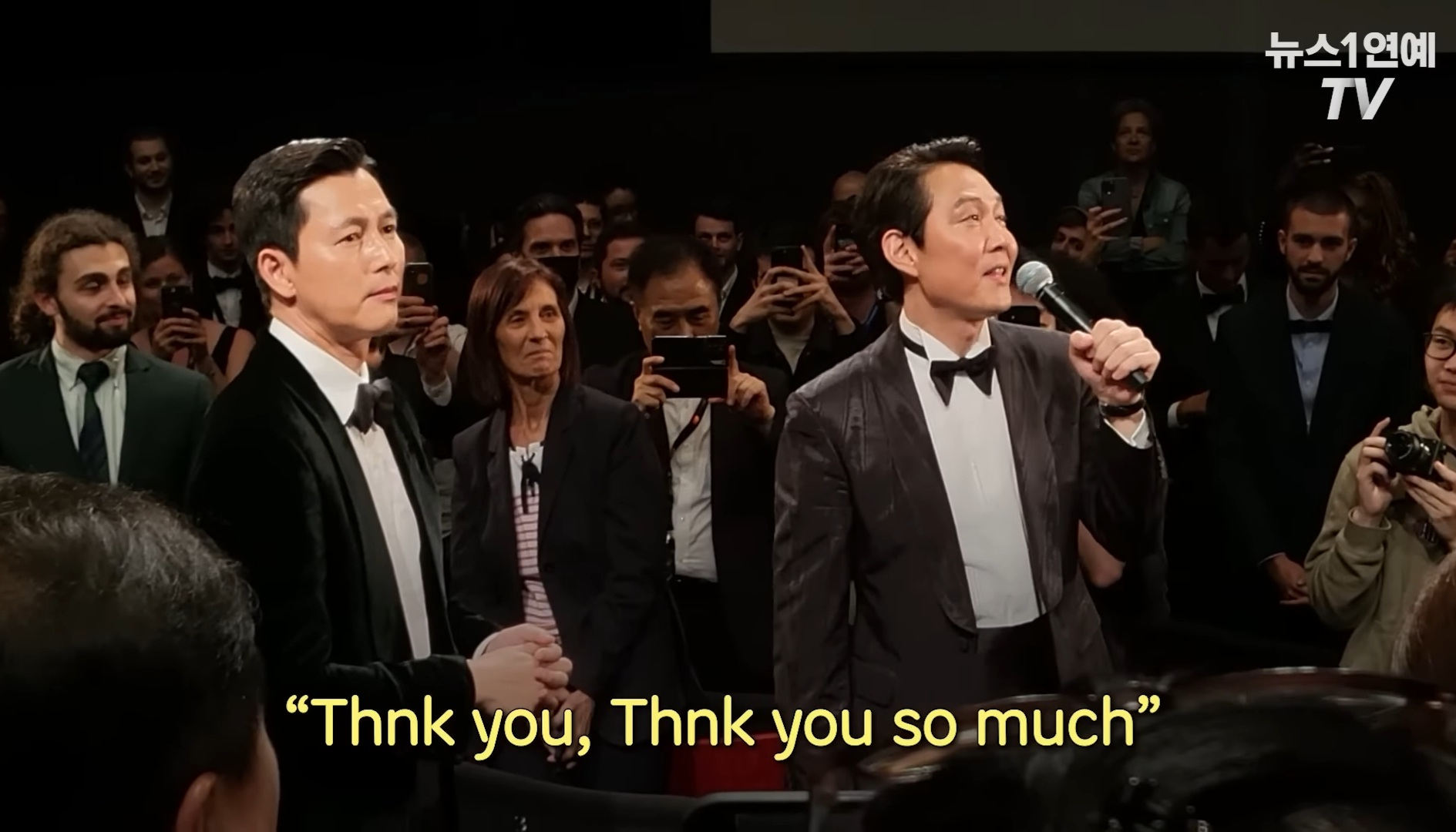 상영 종료 후 관객은 기립박수를 보냈는데요. 소식 전달 매체마다 기립 박수 시간이 3분 간, 5분 간, 7분 간으로 다른 걸 보면 사소한 것에서부터 사실에 입각한 기사 작성이 참 힘든가보다 싶습니다. 이정재 감독의 절친이자 헌트의 주인공 정우성은 함께 박수를 치며 감사한 마음을 전했습니다. “재미있게 보셨기를 바랍니다. 쌩규. 쌩규 쏘 머치. 메르시 복구. 감사합니다.”