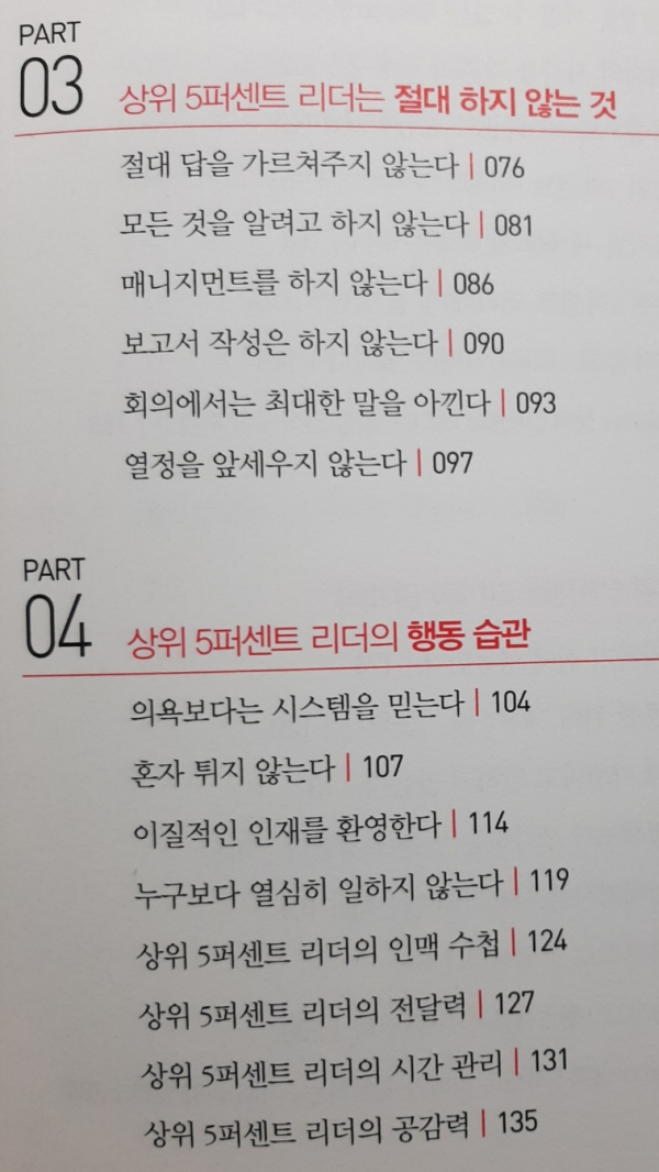 PART 4 : 상위 5퍼센트 리더의 행동 습관