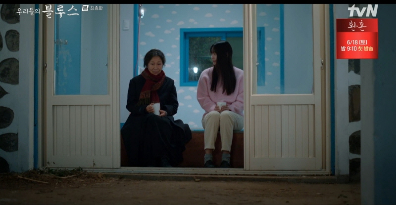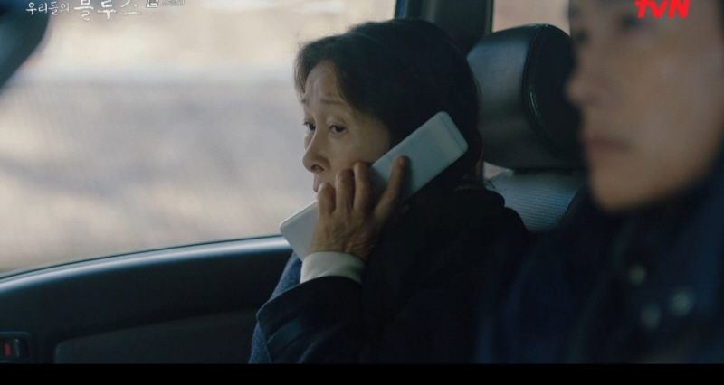 옥동은 춘희와 통화합니다. 춘희는 “경해도 암 걸린 게 복이라. 아프니까 동석이가 잘 해주니.” 듣기에 따라 거북할 수 있지만 옥동과 춘희 사이에는 말 뒤에 숨은 말이 없습니다. 서로 위로와 감싸줌만 있을 뿐이죠.