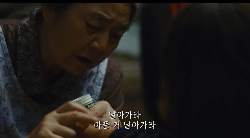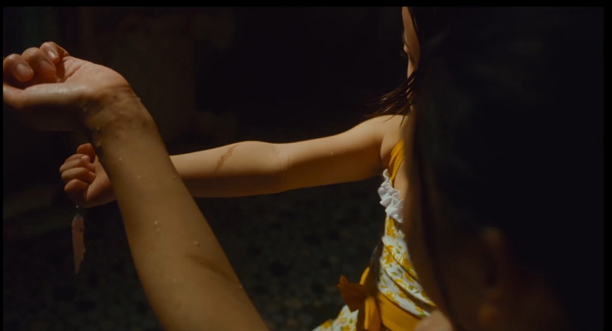노부요는 일하다 난 상처지만 유리는 가정폭력으로 난 상처일 겁니다. 유리가 노부요의 상처를 쓰다듬어 줍니다.