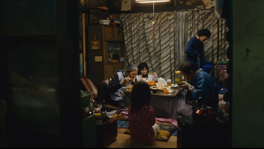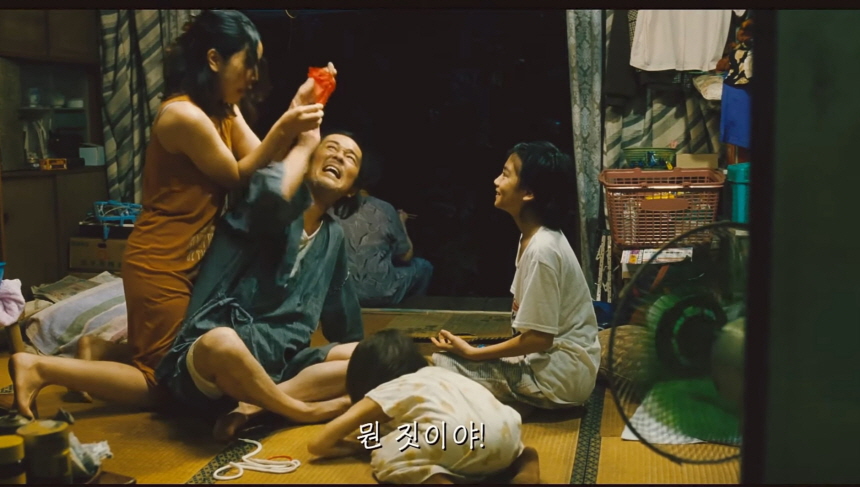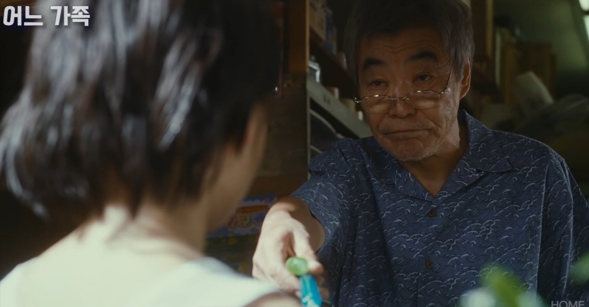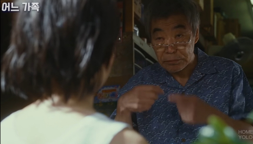 영화의 첫 장면은 초로의 사내가 남자 아이와 마트에서 팀을 이뤄 도둑질하는 것으로 시작합니다. 남자의 신호에 따라 아이는 배낭에 물건을 담고 남자는 직원의 시선을 차단해 아이가 도둑질 하는 것을 돕습니다.