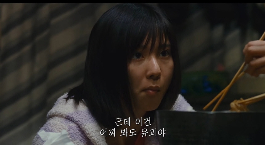 집으로 돌아오는 길에 따끈한 고로케를 사먹으면서 걷는데 1층 베란다에서 오들오들 떨고 있는 여자 아이를 발견합니다. 지난번에도 아이가 그렇게 방치되어 있었기에 남자는 그 아이를 안고 집으로 옵니다. 이미 인원초과로 비좁은 집에서 가족들이 식사하고 있었습니다. 낯선 아이를 데려왔는데도 별로 놀라는 기색이 없습니다.