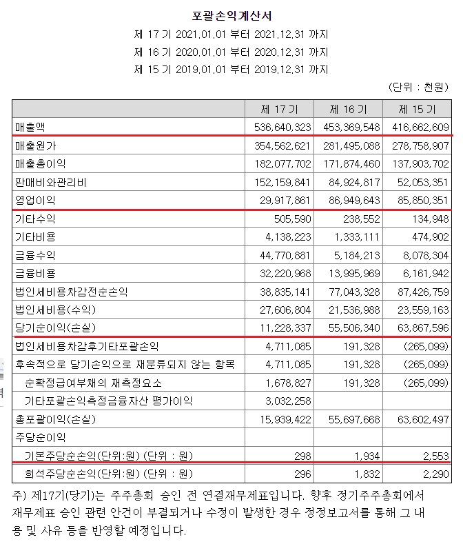 전문가 중에는 하이브의 재무제표가 견조하니까 방탄소년단 단체활동 중단 소식은 일시적인 해프닝일 뿐 주가는 반등할 것이라고 봤는데요. 제가 확인한 바로는 재무제표 상 2019~2021년 까지 매출액은 늘었지만 2021년 영업이익과 당기순이익이 전년대비 줄었음을 알 수 있습니다. 매출액이 늘었는데 영업이익이 줄어든 건 판관비와 기타비용 증가 때문입니다.