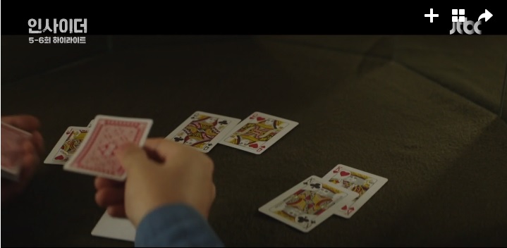 드디어 결전의 날, 선오와 요한, 양회장과 진이사가 테이블에 앉았습니다. 카드 게임 룰을 몰라도 배우들의 눈빛과 민첩한 행동에 긴장하게 됩니다. 드디어 요한이 스테끼를 시전하려는데 양회장의 예리한 시선에 딱 걸렸습니다.