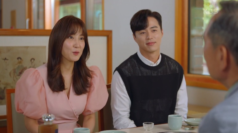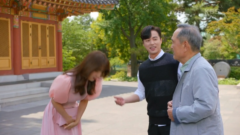 심해준은 드라마에 웃음 한 스푼 넣어주는 귀여운 캐릭터입니다. 식사 후 경철은 행선지가 다 다르니 따로 가자고, 그게 편하다고 말합니다. 해준은 자기가 안 편하다며 경철을 모셔다 드리고 미리 준비한 옷선물도 드립니다. 이렇게 예쁜 손주 며느리가 현실에 존재할 확률은 얼마나 될까요.