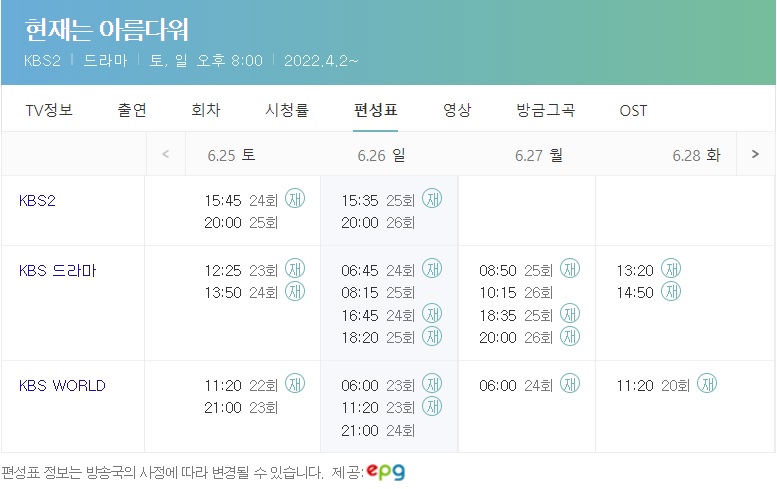 현재는 아름다워 재방송 편성표