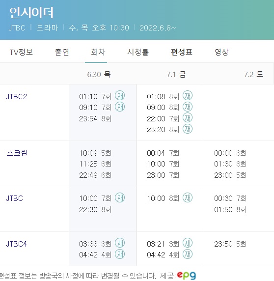 인사이더 재방송 편성표는 아래와 같습니다.