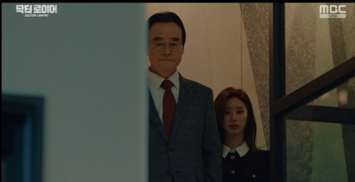 제이든 리는 액션플랜 B를 위해 구진기의 대항마가 될 임태문(전 외교부 장관, 현 주미대사)과 친분을 쌓았습니다. 먼저 임태문의 딸 임유나와 친분을 쌓은 후 임유나를 통해 임태문과 만나게 됩니다. 닥터로이어 8회 줄거리에서 임유나와 제이든 리가 합을 맞추는 장면이 있었는데요. 두 배우의 연기가 민망할 정도로 너어무 어색해서 한 숨이 폭~ 나왔습니다. 이렇게나 배우들의 연기에 진심인 스스로가 웃겨서 크게 웃었네요.