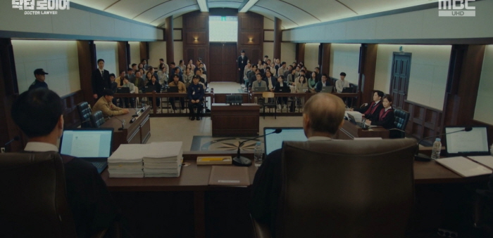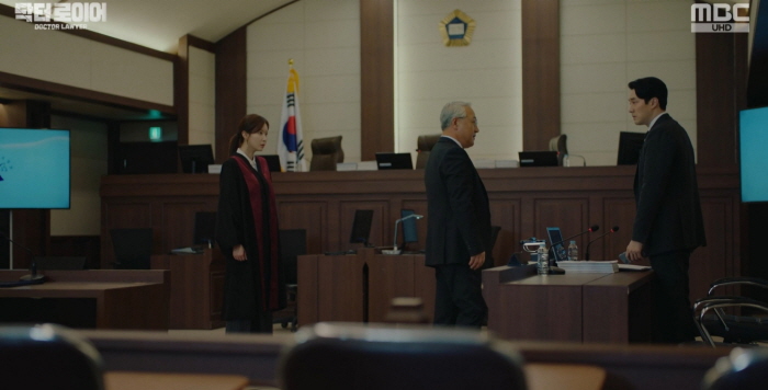 한이한은 하필 남혁철의 공판일에 남준환의 수술을 해야 했고 수술 시간이 길어지는 상황이 옵니다. 한이한과 함께 구진기에게 복수할 일이 있는 검사 금석영은 재판장에게 공판 시작 시간을 연기해 달라고 부탁하죠.