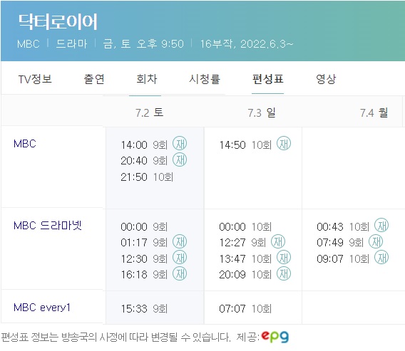 닥터 로이어 재방송 시간은 다음과 같습니다.