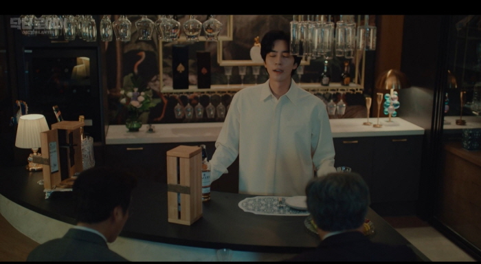한 편, 제이든은 고가(20억?)에 낙찰 받은 위스키(전 세계에 3병만 있는)를 정태준 반석병원 전 원장의 아들에게 선물이라며 대접합니다. 제이든 역의 신성록 배우의 표정과 제스처가 참 풍부합니다. 그런데 드라마 연기라기보다 연극 연기같이 아주 쪼큼 부담스럽네요.