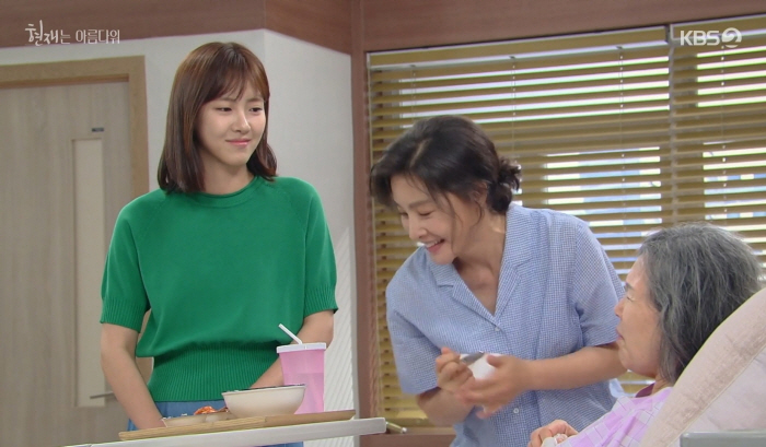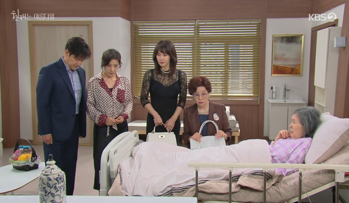 수정이 모시고 사는 시어머니와 1년 만에 미국에서 한국에 온 시누이가 사돈어른 병문안을 옵니다. 시누이는 수정이와 어릴 때부터 친구사이였죠. 진수정은 친구 오빠와 결혼한 겁니다. 수정의 어머니는 치매 초기인데 하필이면 사돈이 왔을 때 증상이 나타납니다.