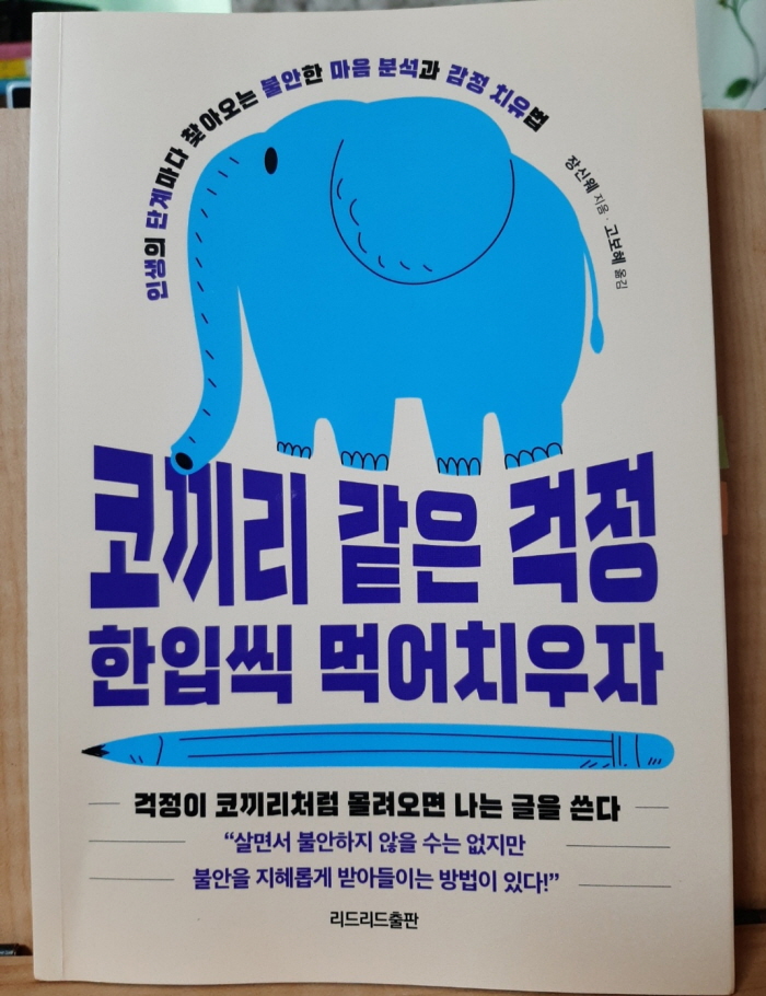 안녕하세요? 책 소개하는 친구 올리브나무입니다. 현재를 사는 우리 중에 걱정이나 불안이 없는 사람은 한 명도 없을 겁니다. 장신웨님의 『코끼리 같은 걱정 한입씩 먹어치우자』(리드리드 출판, 2022. 7.10.)는 걱정, 두려움, 불안 같은 감정을 지혜롭게 다루는 법을 알려주는 책입니다.