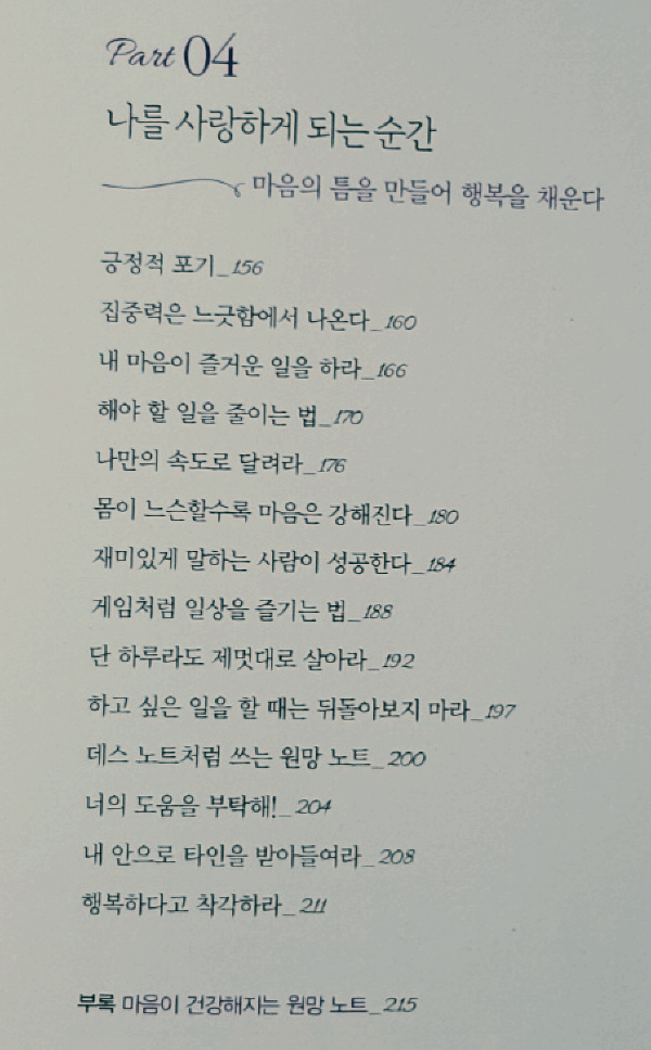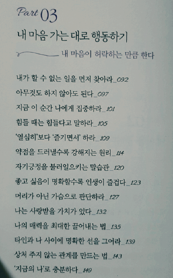 아무것도 하지 않아도 된다. 지금 이 순간 나에게 집중하라. 힘들 때는 힘들다고 말하라. 좋고 싫음이 명확할수록 인생이 즐겁다.