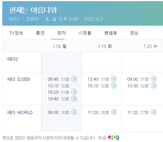 현재는 아름다워 재방송 편성표