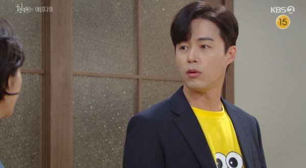 31회에서 이윤재는 문 손잡이에 옷이 걸려 셔츠 단추가 떨어져 맨 살이 노출됐었죠. 심해준이 바로 앞을 막아 가려주었는데요. 이현재와 이수재는 급히 형을 데리고 나갑니다. 다행히 이현재의 차에 여벌의 티셔츠가 있어서 갈아입었습니다. 제가 이수재라면 제가 입은 옷을 형에게 양보하고 캐릭터가 크기 그려진 노랑 티셔츠는 이수재가 입었을 거 같네요.