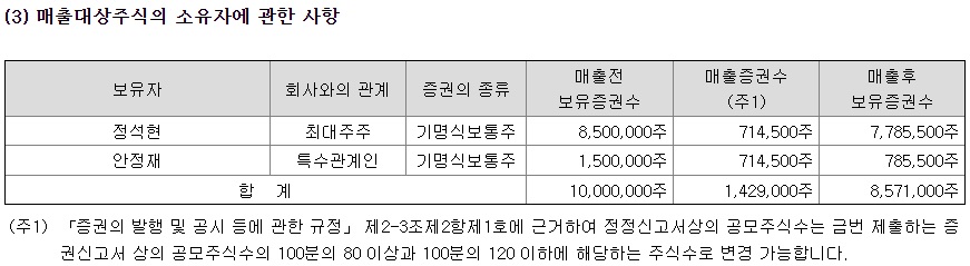 단점으로는 구주매출이 높다는 점입니다. 공모 주식수 중에 신주 모집 75%, 구주매출 25%인데 구주매출이 142만 9천주나 됩니다. 구주매출은 최대 주주 부부의 보유분입니다. 증시 분위기도 좋지 않은데 공모주의 유통 물량이 많은 것은 단점입니다.