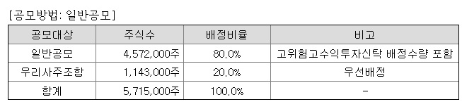 균등배정 물량은 삼성증권 664,368주, 미래에셋증권 50,006주