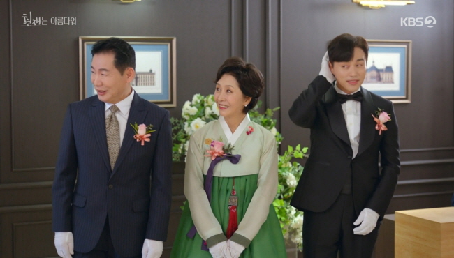 해준이 힘껏 던진 부케는 이상한 방향으로 날아가 시고모할머니(선우용녀 분)가 받게 됩니다.