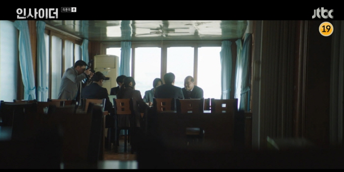 인사이더 15회 마지막은 골드카지노 지배인실에서 윤병욱을 맞이한 김요한, 오수연, 목진형, 김우진의 장면으로 끝났습니다.