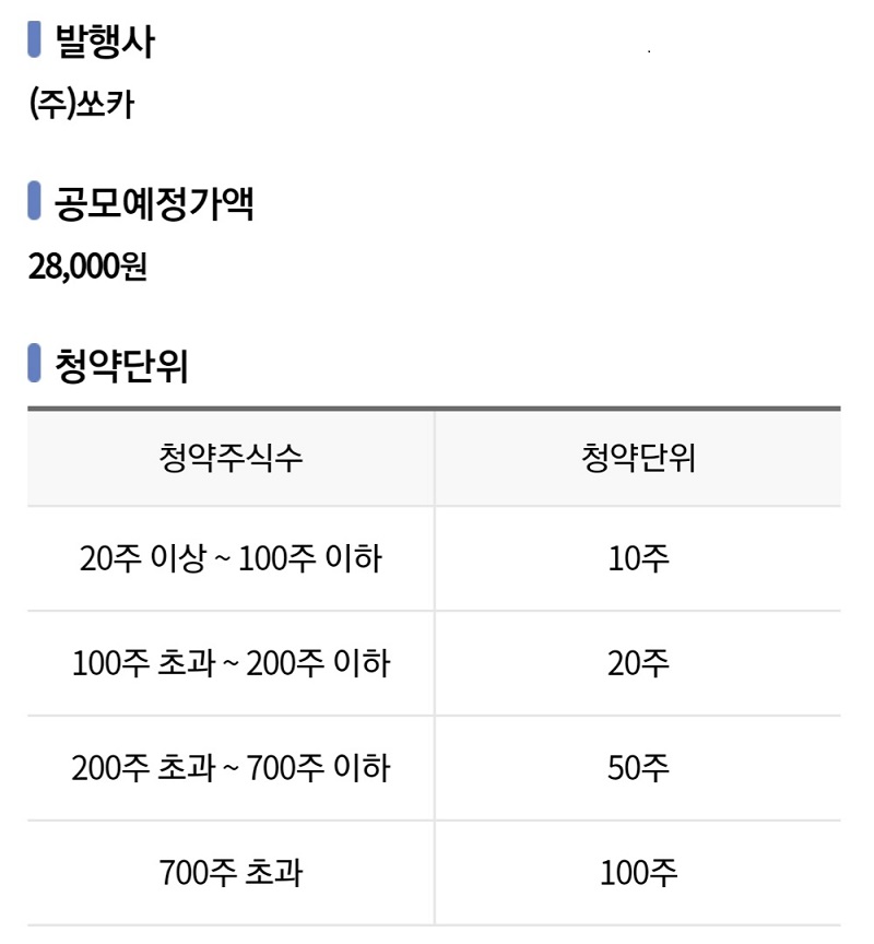 보통 공모주 청약 최소 수량은 10주인데 쏘카 공모주 청약 최소 수량은 20주이니 주의 요합니다.