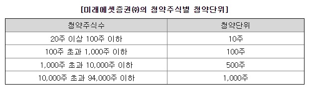 미래애셋 증권과 삼성증권의 쏘카 공모주 일반 최소 청약 수량과 단위는 아래와 같습니다.